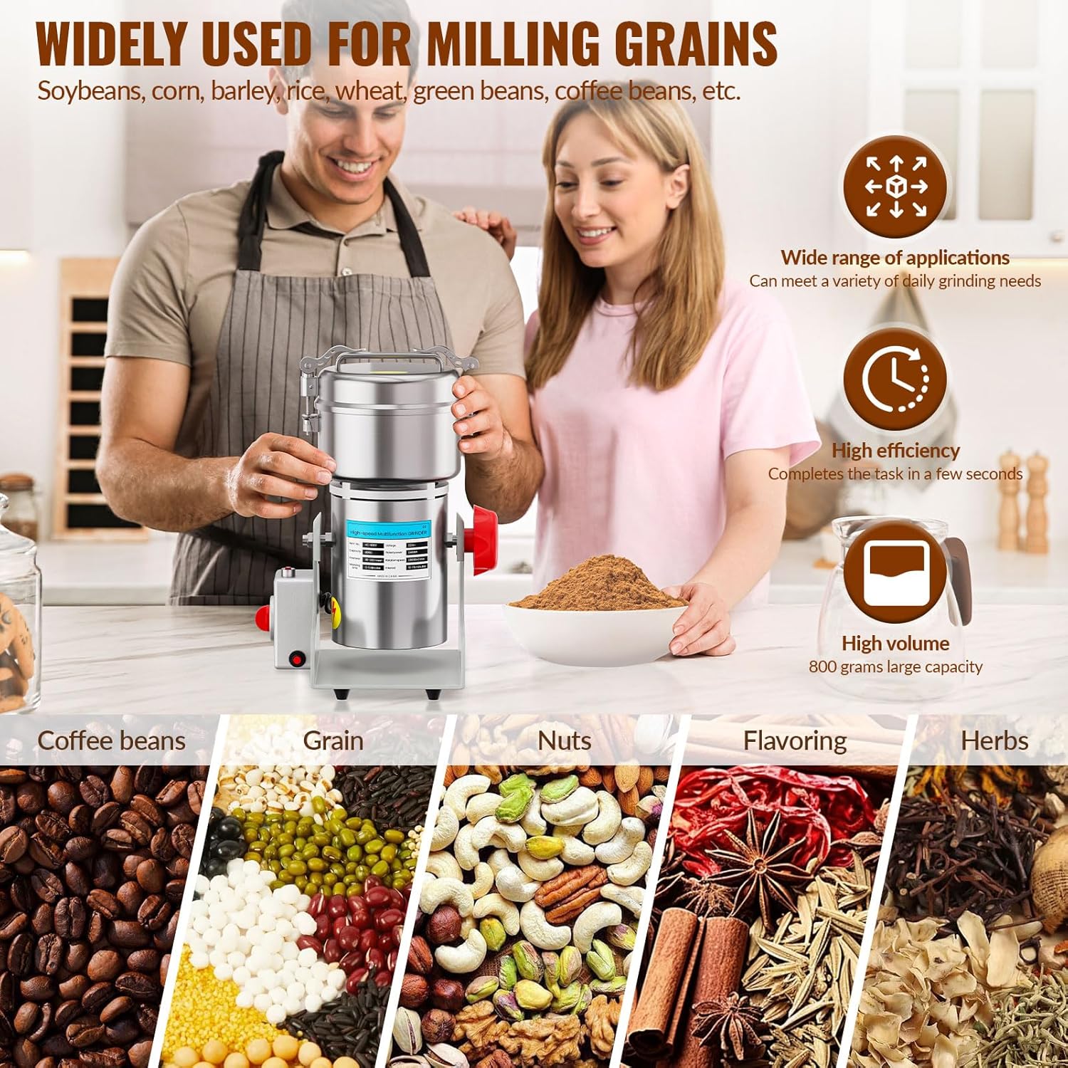 Con su motor de alta velocidad y su sólida construcción de metal, MOXENPRO transforma granos, especias, café, nueces, hierbas, arroz, maíz, semillas y mucho más en polvo ultrafino en segundos.